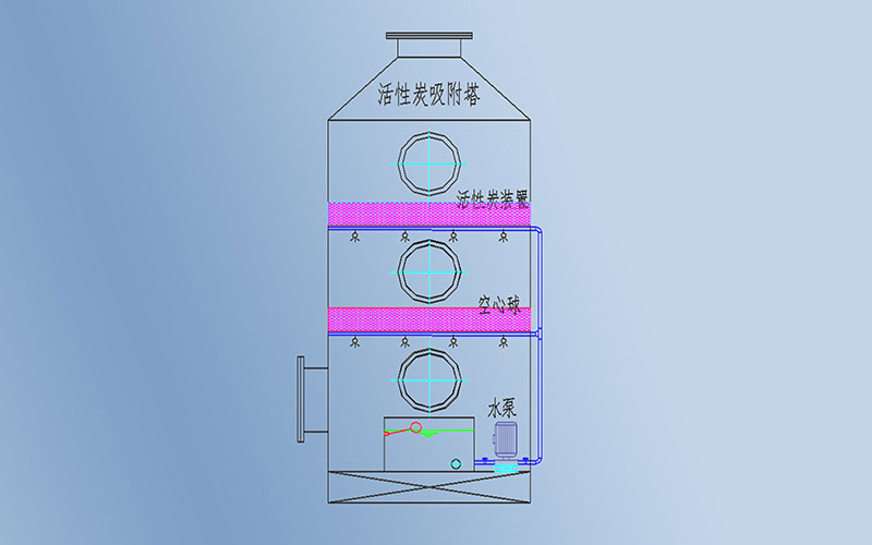 活性炭噴淋塔是集噴淋吸收系統(tǒng)和吸附系統(tǒng)為一體的綜合性環(huán)保設(shè)備。主要由塔體、噴淋層、填料層、循環(huán)水箱、循環(huán)泵活性炭吸附層、檢查孔等組成。該設(shè)備對各種無機(jī)和有機(jī)氣體中的有機(jī)物和重金屬離子等具有較大的吸附量和較快的吸附速率,在環(huán)境保護(hù)方面常用來吸附回收空氣中的有機(jī)溶劑和惡臭物質(zhì)。